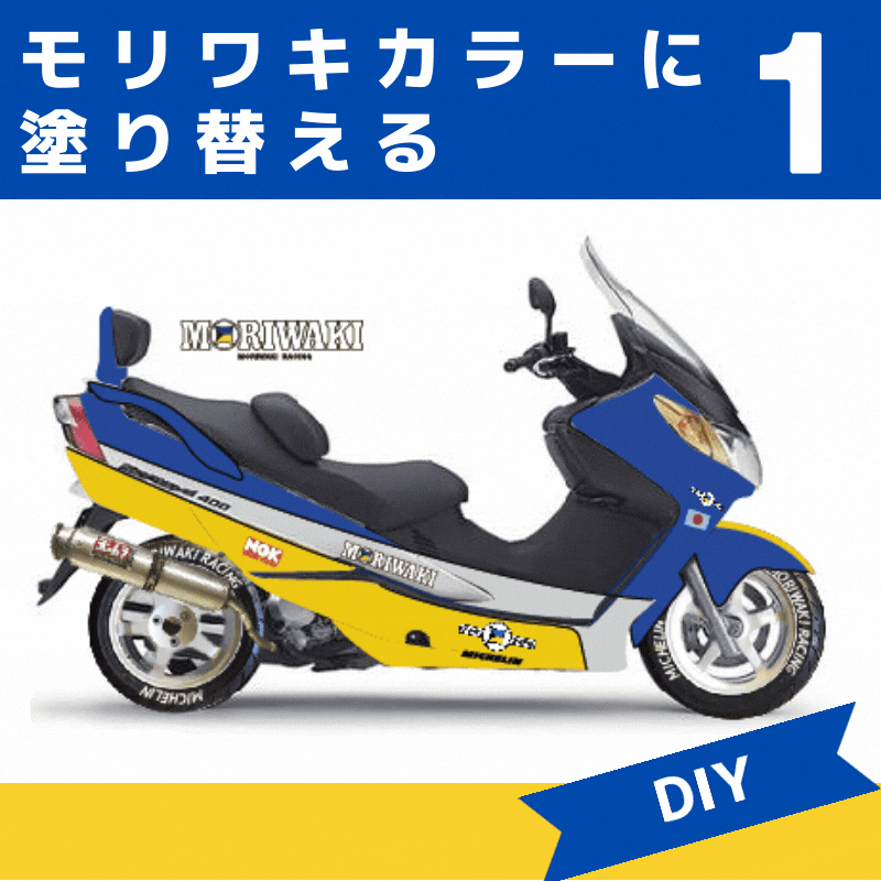 さて、今回は気分一新してモリワキカラーをどうやって塗るか? を考えて見ることにします。構想中の感じはこれ。