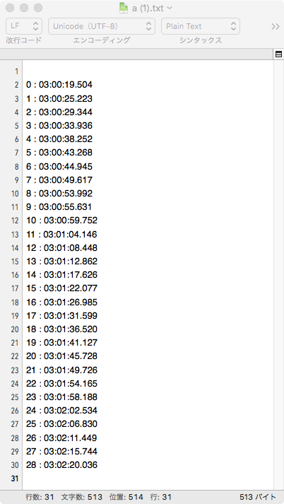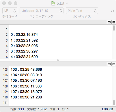 ちゃんと、最初の1回目のタイムスタンプだけでしたね!