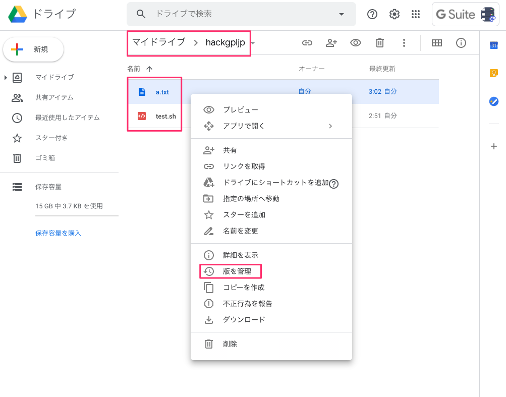 GoogleDriveの版数管理を今日はテストしてみるよ!