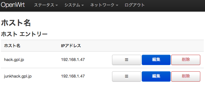 あとは、hostsの内容はWEB GUI画面から管理できます。