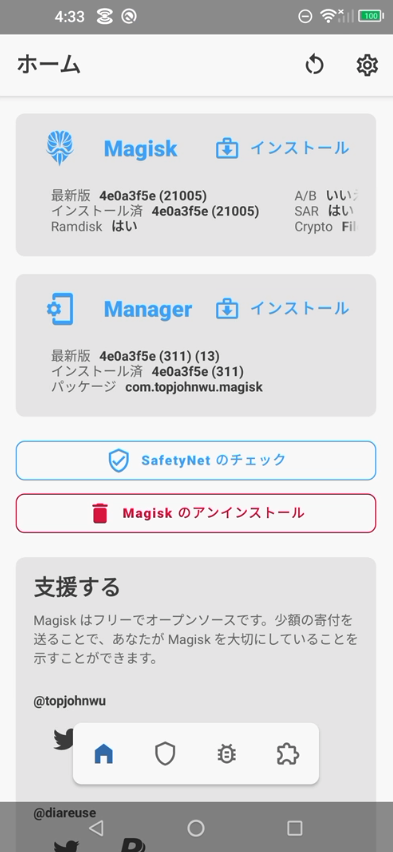 リブート後、MagiskManagerを起動するとこのようになっていると思います。