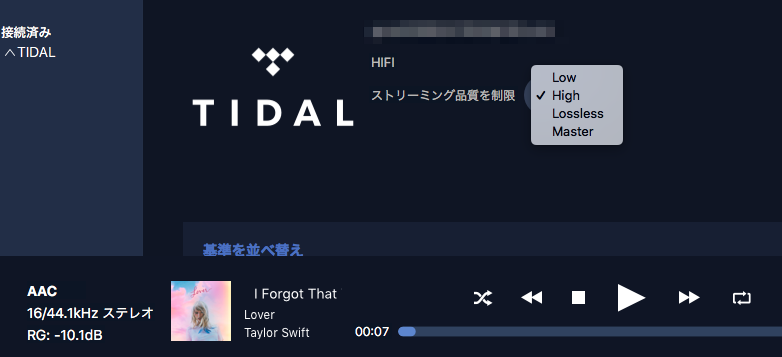 Tidalは、LowからMasterまで品質があってそれぞれ以下のようです。