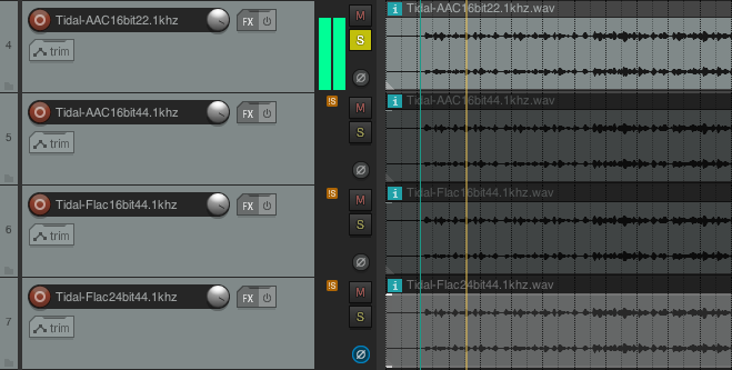今回は、図のように4種類の音をTidalからデジタル録音して検証しました。図中の4〜7は以下のような品質です。