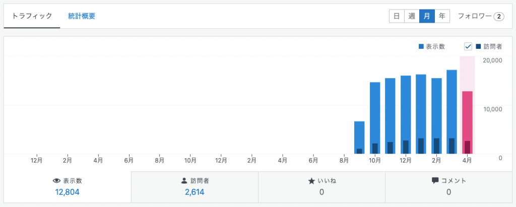 去年の10月くらいから、pixel3のスマホサーバに引越ししたのですが、アクセス状況はこんな感じです。引越し以前のデータもそれほどかわりません。横ばいといった感じです。