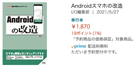工学社 出版のI/O編集部さんが、「Androidスマホの改造」っていうタイトルの本を出されたのですがその中で、なんと、このブログの記事の一部が載っていますよ。ただいま、絶賛予約中です! 5/27発売です。