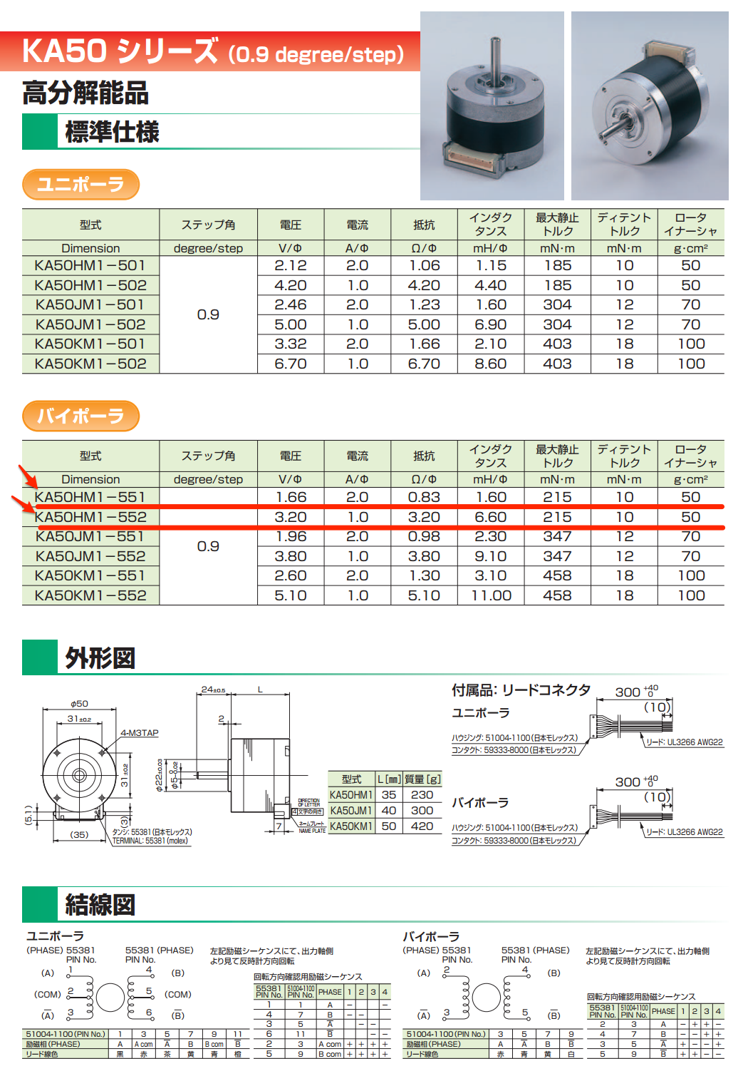 日本サーボ 2相ステッピングモーター KA50HM1-551